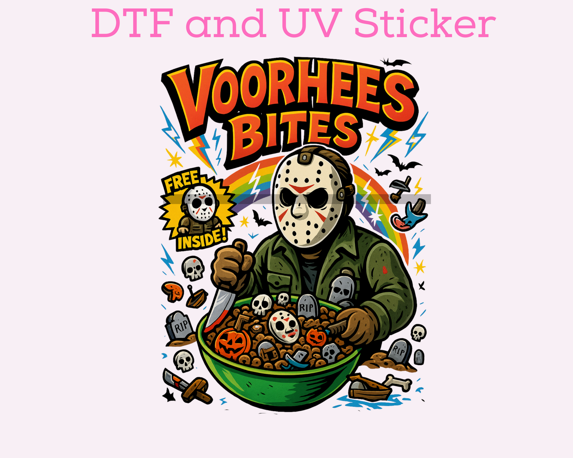 Yay! You're purchasing a Jason Cereal Halloween DTF TRANSFER or UV DTF STICKER