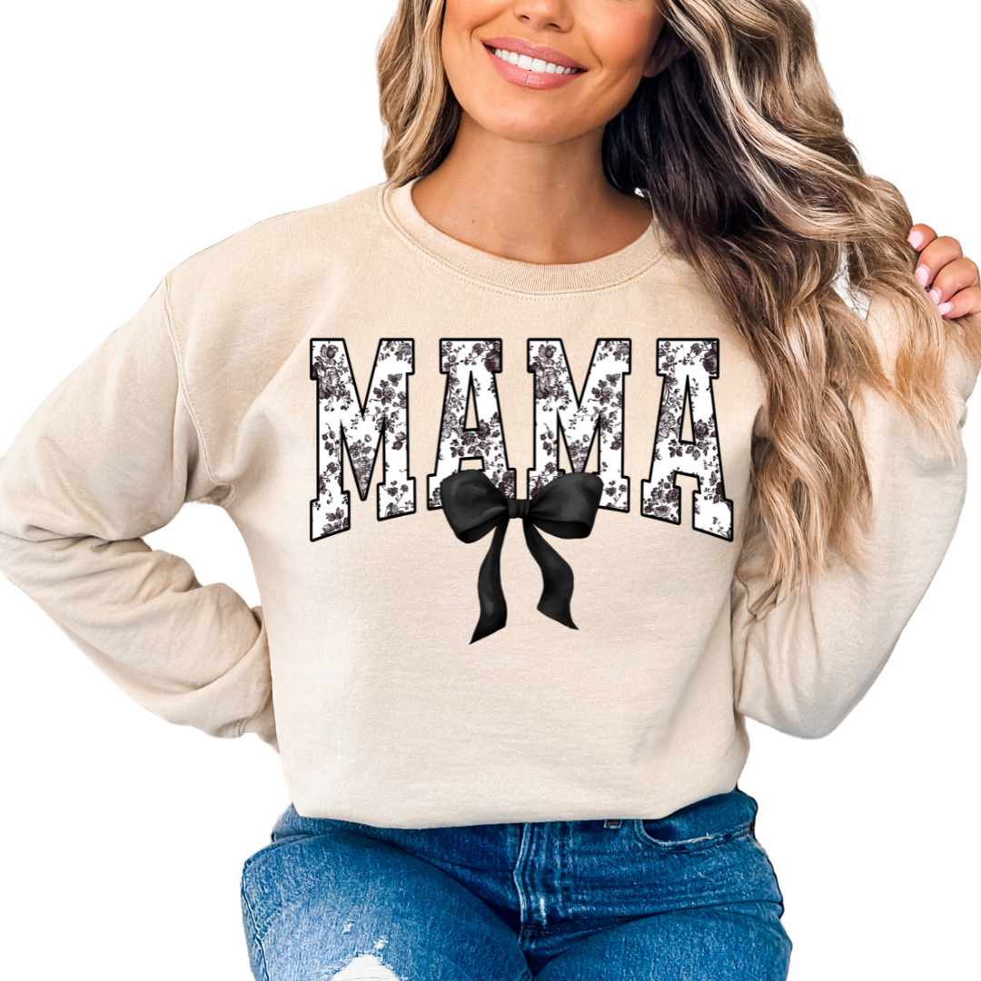 Yay! You're purchasing a Varsity Black Floral Mama Coquette Bow Trendy Family Valentine's Day DTF Transfer